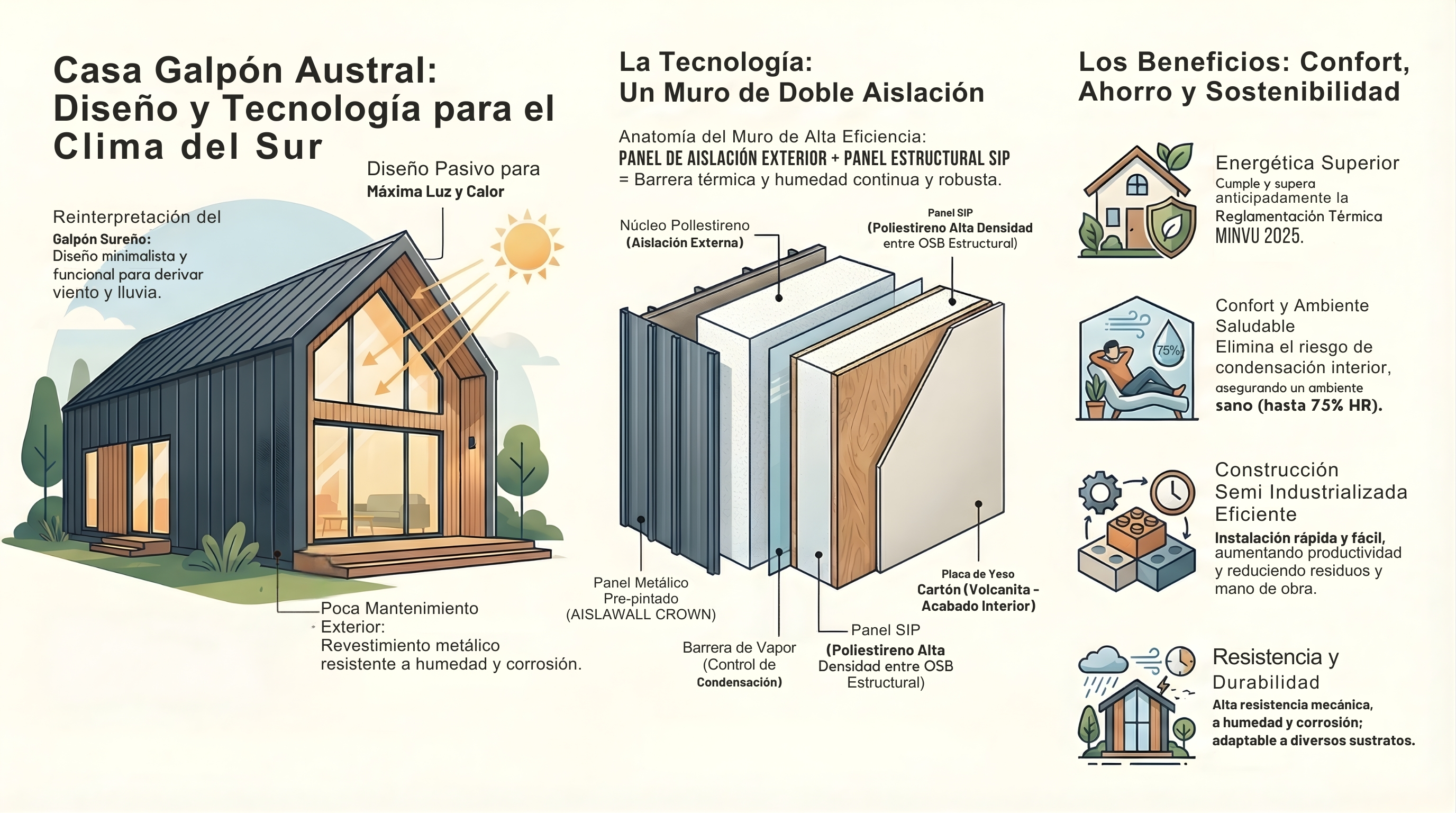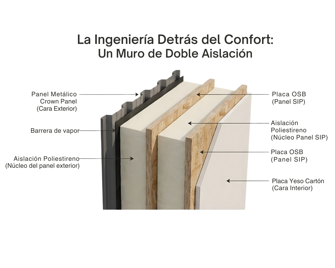 Doble aislación (SIP + Aislawall) para un control térmico absoluto.